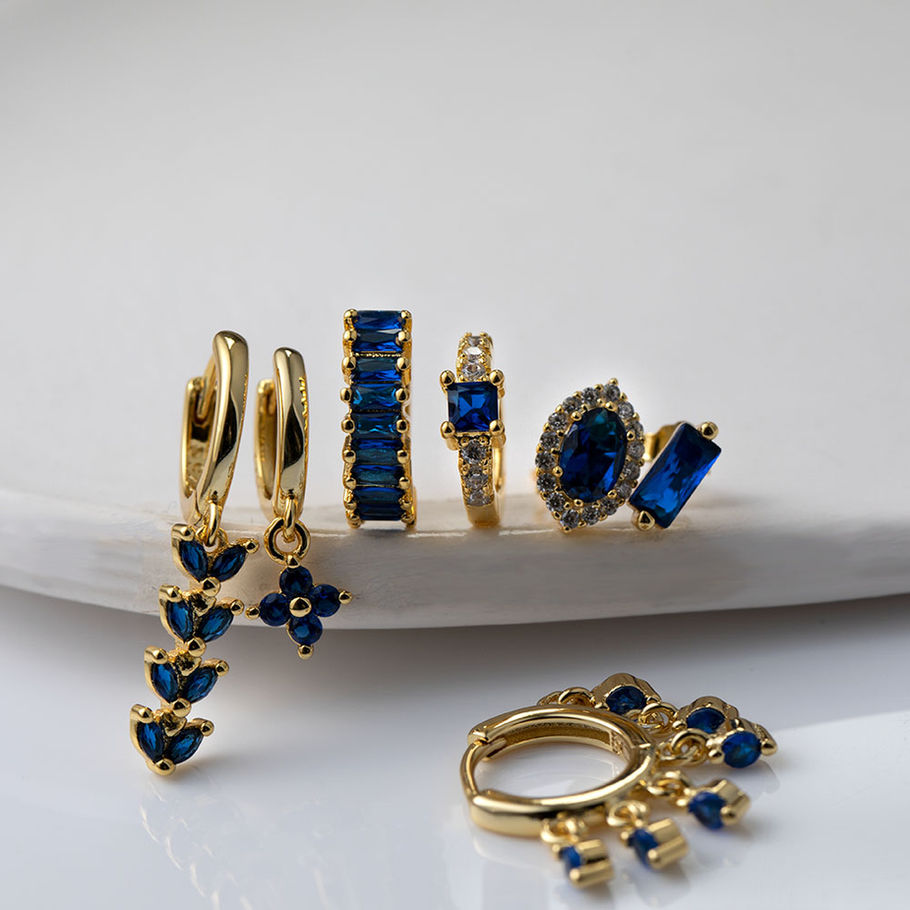 Add a touch of elegance and sparkle to your look with these 18K Gold Plated Dark Blue Zircon Hoop Earrings. Made with 925 Sterling Silver, these huggie earrings are a stunning addition to any jewellery collection. Perfect for any occasion, let these earrings be a symbol of your style and sophistication.